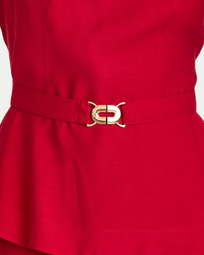 O caimento limpo, o decote clássico e o recorte peplum fluido fazem dela uma peça que se adapta facilmente de ocasiões profissionais a momentos especiais, mantendo sempre um ar de presença e polidez.