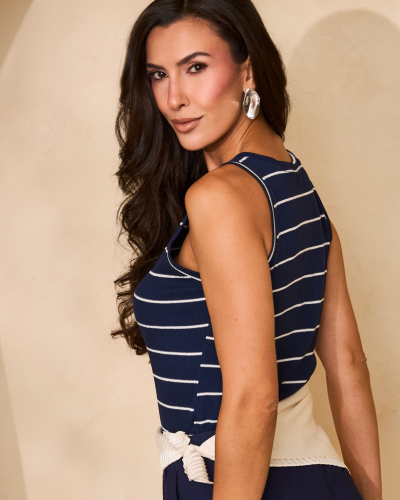 A Blusa Lara é a união perfeita entre conforto e estilo, ideal para compor produções casuais com um toque de sofisticação. Confeccionada em malha de viscose, possui toque macio, leve elasticidade e caimento ajustado ao corpo, valorizando a silhueta de forma natural. As listras trazem o charme atemporal do estilo náutico, que é sinônimo de elegância descomplicada.