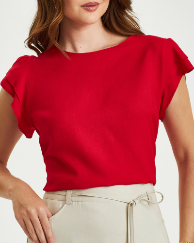 Confeccionada em viscose creponada, a Blusa Clara é o equilíbrio ideal entre feminilidade e elegância casual. Com leve textura e toque suave, o modelo possui mangas curtas delicadamente sobrepostas, que criam um efeito fluido nos ombros.