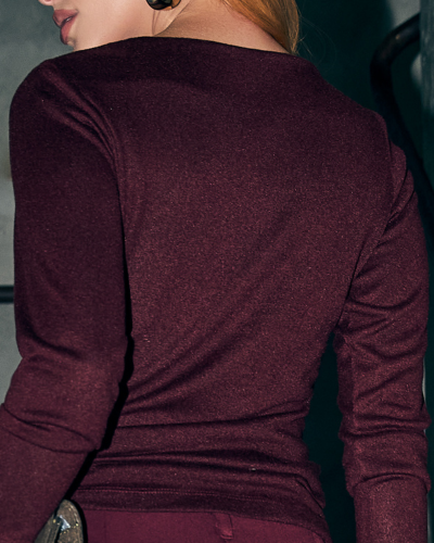 Detalhe aplicado estrategicamente na lateral da peça, criando leve drapeado que valoriza a silhueta e proporciona ajuste mais orgânico ao corpo. | ![]() |