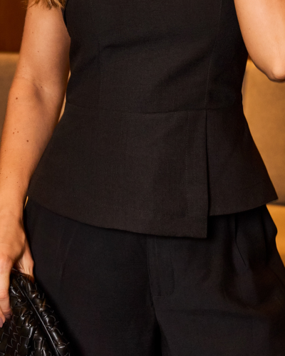 Com design geométrico e corte preciso, a Blusa Luana combina a estrutura da alfaiataria com um toque de feminilidade contemporânea. O decote reto, em harmonia com as alças médias, cria um visual equilibrado e elegante. O caimento ajustado na cintura valoriza a silhueta, enquanto o lastex nas costas garante conforto e liberdade de movimento. Um modelo que traduz o novo essencial — versátil, atemporal e marcante.
