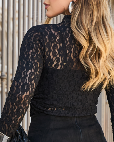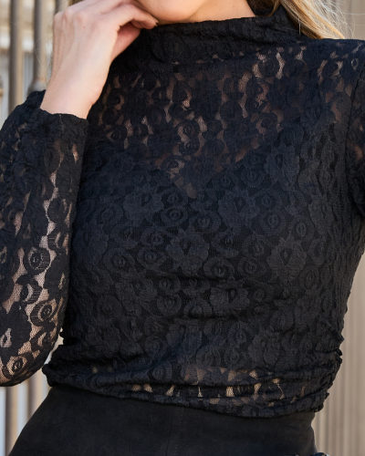 A delicadeza da renda encontra uma proposta atual em uma composição pensada para destacar o visual com conforto. A blusa acompanha top em algodão, criando contraste entre transparência e cobertura na medida certa. O top conta com lastex e alças ajustáveis, proporcionando melhor encaixe ao corpo e mais praticidade no uso. A modelagem ajustada valoriza a silhueta, enquanto a gola alta reforça a elegância da peça. Ideal para produções sofisticadas, do jantar especial a combinações com alfaiataria e denim.