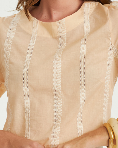 A Blusa Ana Maria traduz a delicadeza do algodão bordado em uma proposta feminina e leve, perfeita para iluminar o dia a dia. O tecido ganha protagonismo através dos desenhos em relevo, que criam textura e profundidade sem pesar no visual. A modelagem reta equilibra conforto e elegância, enquanto as mangas curtas trazem estrutura suave e um toque contemporâneo.