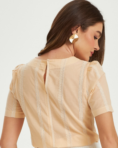 As mangas curtas têm um caimento suave que adiciona feminilidade sem exageros, mantendo o visual polido e atual. | ![]() |