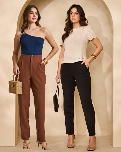 Perfeita para transitar entre ocasiões formais e casuais, a peça pode ser combinada com blusas sofisticadas, camisas ou tops modernos, compondo visuais equilibrados e cheios de estilo. | ![]() |