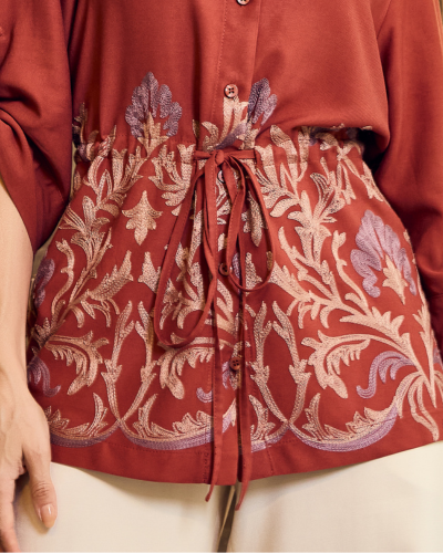 A leveza da viscose encontra o trabalho detalhado do bordado nesta camisa que combina elegância e riqueza de acabamento. A peça apresenta modelagem alongada com caimento fluido, gola clássica e abotoamento frontal, criando uma base atemporal que valoriza diferentes composições.