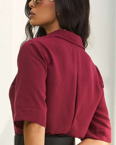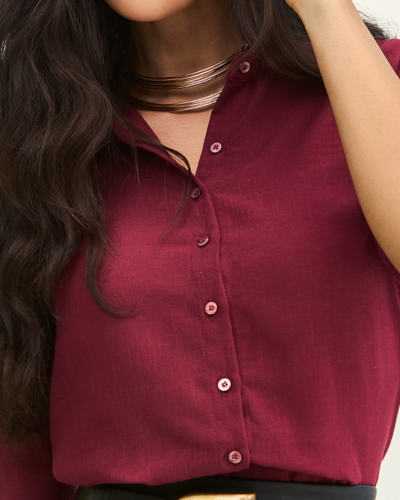 Linhas limpas e construção precisa definem a camisa Emanuela. A alfaiataria leve garante um caimento alinhado ao corpo sem rigidez, enquanto o abotoamento em madrepérola insere um brilho discreto que valoriza o acabamento. A manga com comprimento intermediário reforça a proposta mais atual da peça, equilibrando elegância e presença com naturalidade.