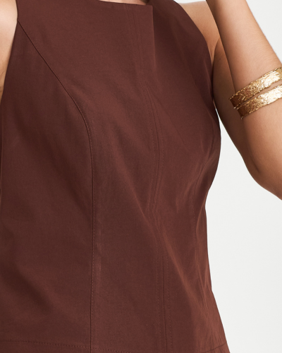 A proposta utilitária ganha leitura contemporânea neste conjunto em sarja cargo, onde estrutura e leveza caminham juntas. A blusa cavada com recortes valoriza o desenho do corpo, enquanto o shorts curto traz equilíbrio entre praticidade e estilo. Uma escolha versátil, pensada para produções atuais, que funcionam tanto em composições casuais quanto em looks mais elaborados com poucos ajustes.