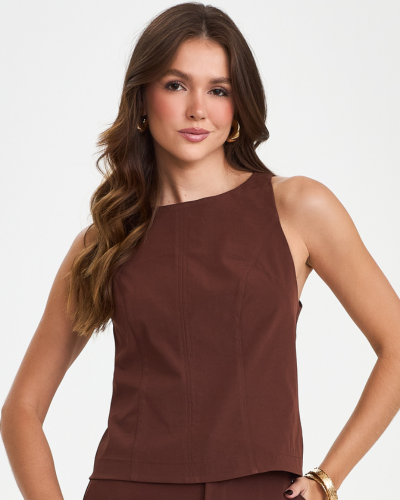 A blusa apresenta recortes estratégicos que acompanham a silhueta. O design valoriza a construção da peça e traz um visual limpo, moderno e fácil de combinar. |