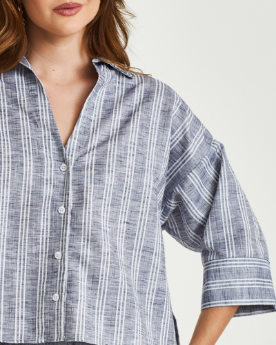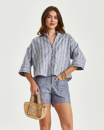 O Conjunto Lara traz leveza e sofisticação em uma proposta casual-chic. Confeccionado em alfaiataria de algodão, ele une frescor e caimento impecável em duas peças atemporais que podem ser usadas juntas ou separadamente. A camisa traz modelagem ampla com listras delicadas, mangas 3/4 e acabamento solto que proporciona movimento e conforto. O short, de cintura alta e bolsos frontais, garante praticidade sem perder a elegância.