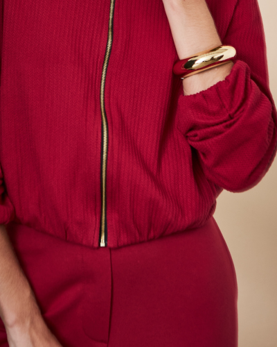 A proposta une conforto e presença em uma leitura contemporânea da malha. O conjunto em algodão traz uma construção que valoriza o corpo com naturalidade, enquanto o zíper frontal adiciona um ponto de destaque que permite modular o visual. A parte superior levemente ajustada encontra a calça de corte reto, criando uma silhueta equilibrada, com caimento limpo e sofisticado. Uma peça pensada para acompanhar diferentes momentos do dia com facilidade, sem abrir mão de estrutura e estilo.