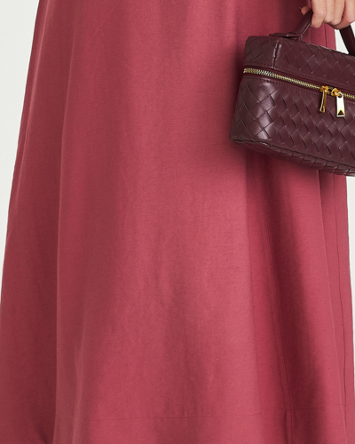 A proposta une leveza e estrutura em um desenho que valoriza o movimento do corpo. A saia em viscolinho apresenta caimento fluido com toque natural, criando uma silhueta alongada e elegante. O comprimento midi reforça a sofisticação da peça, enquanto a modelagem limpa permite combinações versáteis e atemporais.