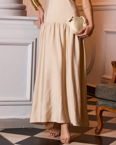 Confeccionado em viscose com poliamida, o vestido Laura possui textura leve, caimento fluido e brilho sutil, resultando em um visual sofisticado e confortável.