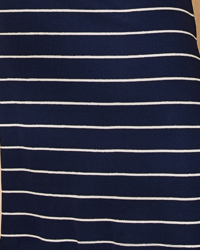 O clássico navy ganha nova leitura neste modelo. As listras horizontais em azul marinho e off-white conferem um visual moderno e elegante, inspirando produções fresh e com um toque náutico, sempre em alta nas temporadas mais quentes. |